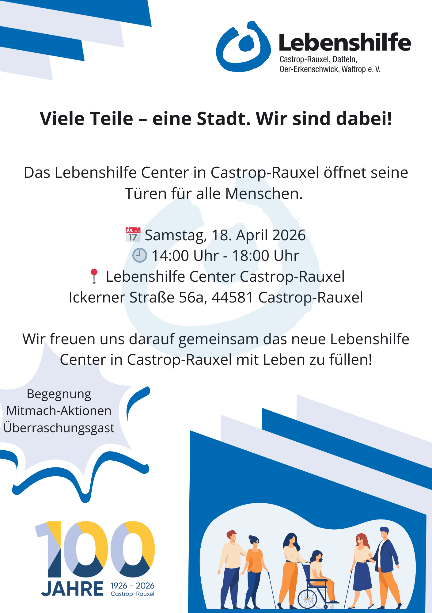 Im Jubiläumsjahr „100 Jahre Castrop-Rauxel“ öffnet das neue Lebenshilfe Center seine Türen für alle Menschen!