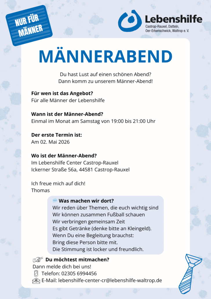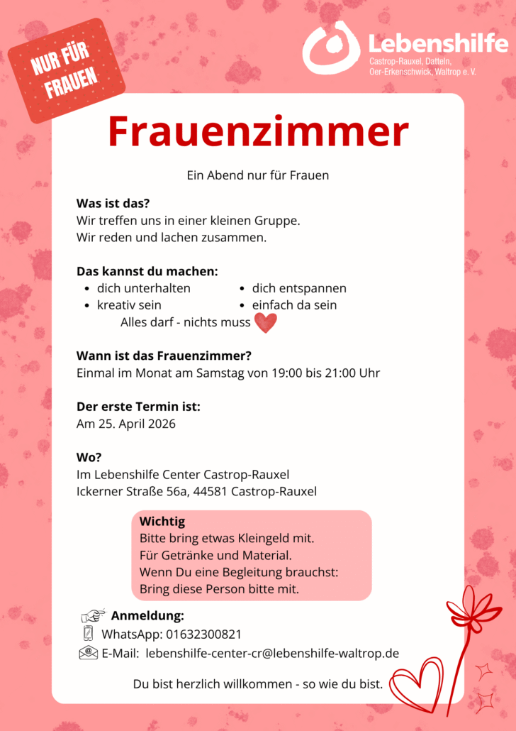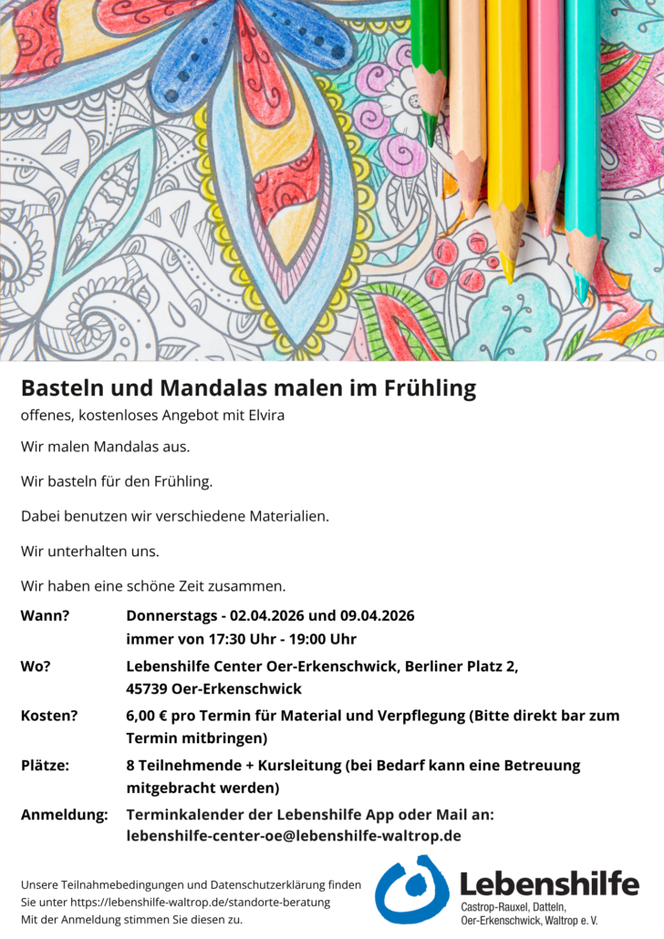 Termine zu Workshops und weitere Informationen zu Teilhabeangeboten im Lebenshilfe Center Datteln finden Sie hier
